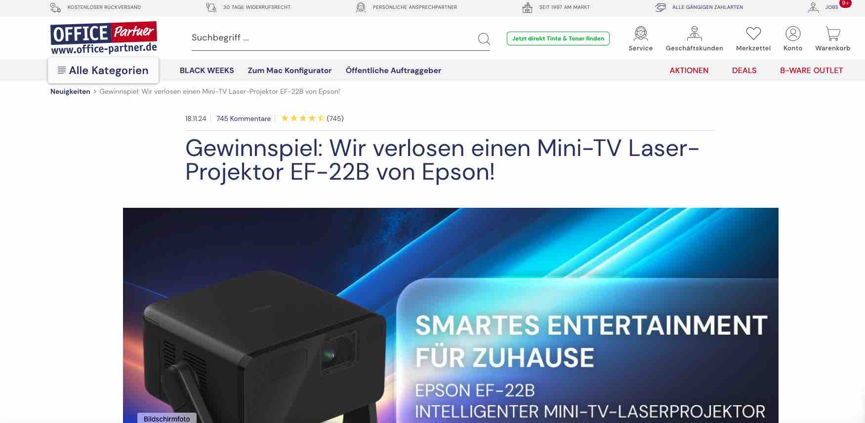 OFFICE Partner Gewinnspiel – gewinne einen Epson EF-22B Mini-TV-Laser-Projektor!